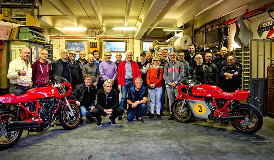 Qui si respira aria di motociclismo, le pareti dell’ufficio e zona clienti piene di storiche immagini. Giovanni ci regala ospitalità per ben 2 ore, gentile e sobrio nei racconti, risvegliati anche da nostre domande, non nasconde la sua sviscerata passione per tutto quello che riesce a fare. Gente di tutto il mondo lo contatta per consigli, si aggiungono i tanti fedeli clienti che frequentano il magico posto. Lui è un dottore per le MV che già venivano curate dall’esperto padre, ed è uno dei pochi che riesce ancora a rimetterle in sesto, una loro modifica è la trasformazione delle 750 da cardano a catena. Avendo la libertà di circolare nei meandri dell’officina, ogni Pompone presente portava a casa un ricordo diverso. Non tutti conoscevano la storia di questo cognome importante, infatti quando il bus prendeva la via di casa, era bello ascoltare i diversi commenti.